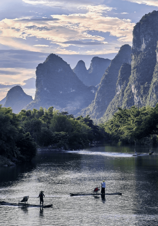 今天主打漓江赏景与亲子体验,让孩子近距离感受山水之美。早上,小安带我们前往漓江兴坪段,提前帮我们订好平稳舒适的亲子竹筏,选好安全的座位,确保孩子乘坐安全,竹筏平缓无颠簸,不用担心孩子不适。乘上竹筏,缓缓前行,看漓江两岸的青山苍翠、江水澄澈,山影入水、水天一色,仿佛人在画中游,孩子趴在竹筏边,看水里的小鱼,吹着江风,格外惬意。小安用通俗易懂的语言,给孩子讲解漓江的传说故事,还带我们观赏黄布倒影、九马画山,教孩子数九马画山的山体图案,在玩乐中增长知识。中午,在漓江岸边的农家菜馆用餐,品尝鲜美的竹筒鸡、清淡的野菜汤,还有软糯的艾叶粑粑,地道又美味,适合孩子口味。下午,小安带我们体验亲子渔火准备,跟着老渔夫学习简单的撒网技巧,傍晚时分,点亮渔火,橘色火光映在水面上,格外治愈,孩子第一次接触渔火,兴奋不已,全程充满乐趣。
